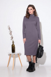 Платье из трикотажа лапша с нагрудными вытачками и воротником-стойкой Fortuna ШЖ 722 серо-фиолетовый