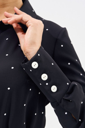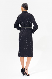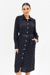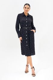 Классическое женское платье -рубашка полуприлегающего силуэта выполнено из легкой струящейся ткани. Изделие со втачными рукавами и высокой акцентной манжетой, рубашечным воротником, карманами в боковых швах, застежкой на петли и пуговицы.