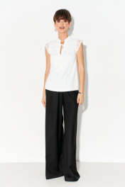 Блуза полуприлегающего силуэта из струящейся ткани с кружевом FOXY FOX 1683 молочный