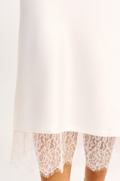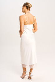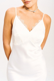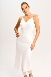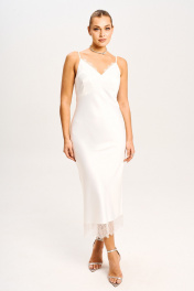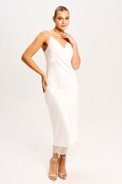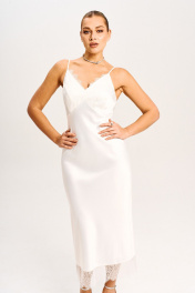 Платье - миди прилегающего силуэта выполнено из струящегося шелк - сатина на регулируемых бретелях и молнией в боковом шве. Подрезы по линии груди и низу платья дополнены мягким французким кружевом, которое держит форму. Платье полностью соответствует заявленному размеру. Пожалуйста, пользуйтесь таблицей замеров готового изделия, чтобы подобрать идеальный размер. Уход за платьем: - при стирке в стиральной машине выбрать бережный либо деликатный режим; -температура воды не выше 30 градусов. ( платье прошло тестовую стирку не линяет).