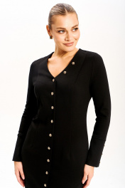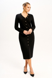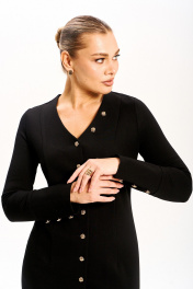 Платье полуприлегающего силуэта выполнено из трикотажного полотна средней плотности. По переду изделия рельефы; рукава втачные с высокой притачной манжетой; вырез горловины v - образной формы; застежка по переду на петли и декоративные пуговицы. Платье полностью соответствует заявленному размеру. Пожалуйста, пользуйтесь таблицей замеров готового изделия, чтобы подобрать идеальный размер. Уход за платьем: - при стирке в стиральной машине выбрать бережный либо деликатный режим; -температура воды не выше 30 градусов.