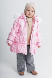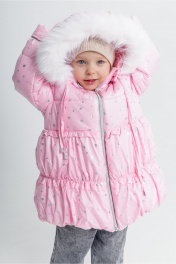 Утепленное зимнее пальто с рюшем и меховым капюшоном Франтишка З-3108 я-21с-122-с78 светло-розовый