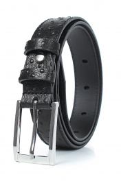 Ремень в обрезку, с обработкой краев, с обстрочкой края, с пряжкой на запряжнике, с двумя шлевками. Размеры: 1150x3x28