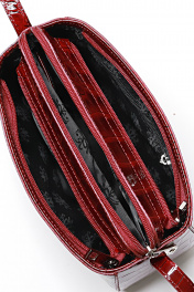 Сумка на одно отделение, закрывающееся на застежку-молнию, с не съемной регулирующейся ручкой-ремнем максимальной длины 1230+-10 мм, с двумя карманами, закрывающимися на застежку-молнию, с украшением на кармане передней стенки. Фурнитура - никель. Размеры: 245x180x95