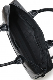 Сумка на одно отделение,закрывающееся на застежку-молнию,с поводками на движках.В нижней части передней стенки расположен обьемный карман,закрывающийся на застежку-молнию,с поводком на движке и накладкой с тиснением на кармане.На задней стенке прорезной Размеры: 390x270x75