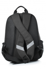 Рюкзак на одно отделение, закрывающееся на застежку-молнию, с одной короткой ручкой длиной 200+-10 мм, с двумя регулирующимися плечевыми ремнями максимальной длины 950+-10 мм, с боковыми держателями, со светоотражающими элементами, на передней стенке объе Размеры:
