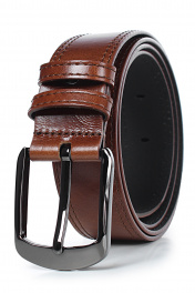 Ремень с краями в обрезку, с обстрочкой краёв, с пряжкой, с двумя шлёвками. Размеры: