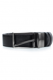 Ремень в обрезку, с обработкой краев, с обстрочкой края, с пряжкой на ремне, с двумя шлевками, двухсторонний. Фурнитура - черный никель. Размеры: 950x3x33