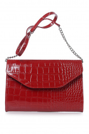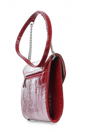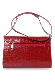 Сумка на одно отделение,закрывающееся клапаном на з/магнитку,с одной сьемной ручкой-ремнем на карабинах,которая частично состоит из цепи,длина ручки-ремня 1060 +-10мм.На задней стенке карман,закрывающийся на молнию,фурнитура-никель. Размеры: 270x180x60