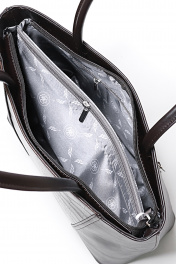 Сумка на одно отделение,закрывающееся на застежку-молнию,с двумя ручками со шнуром длиной 550+-10мм, на задней стенке карман,закрывающиеся на застежку-молнию, фурнитура-никель. Размеры: 380x270x145