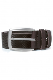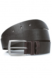 Ремень в обрезку, с обработкой изнанки, с декоративным тиснением ремня, с пряжкой и шлевкой на запряжнике, с одной передвижной шлевкой. Цвет фурнитуры-черный никель. Размеры: 1150x3x38