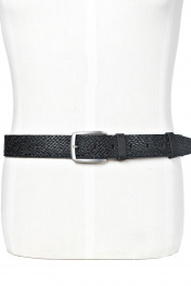Ремень в обрезку, с обработкой изнанки, с декоративным тиснением ремня, с пряжкой и шлевкой на запряжнике, с одной передвижной шлевкой. Цвет фурнитуры - черный никель. Размеры: 1150x3x40