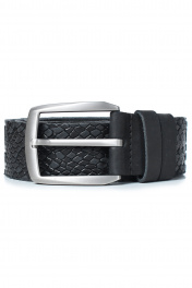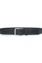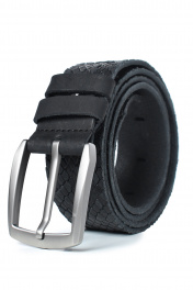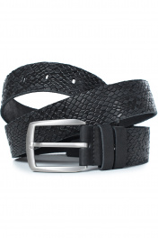Ремень в обрезку, с обработкой изнанки, с декоративным тиснением ремня, с пряжкой и шлевкой на запряжнике, с одной передвижной шлевкой. Цвет фурнитуры - черный никель. Размеры: 1250x3x40