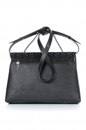 Cумка на два отделения, закрывающиеся клапаном на замок-защелку, с одной короткой ручкой длиной 320+-10мм, с несъемной регулирующейся ручкой-ремнем максимальной длины 1220+-10мм, на задней стенке карман, закрывающийся на застежку-молнию, с пуклями на дне. Размеры: