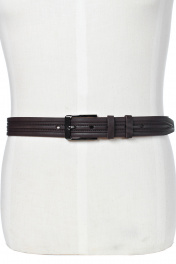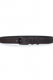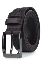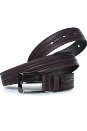 Ремень в обрезку, с обработкой изнанки, с декоративным тиснением ремня, с пряжкой и шлевкой на запряжнике, с одной передвижной шлевкой. Цвет фурнитуры - черный никель. Размеры: 1350x3x35