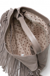 Сумка на одно отделение,закрывающееся на замок-магнитку,с одной ручкой длиной 430+-10мм,с карманом на задней стенке,закрывающийся на застежку-молнию,с украшениемлейбл на передней стенке и украшением (бахрома)в нижней части передней стенки.Цвет фурнитуры-н Размеры: