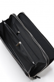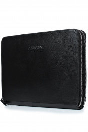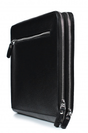 Папка на два отделения, закрывающиеся на застежку-молнию, на задней стенке карман, закрывающийся на застежку-молнию, с тиснением на передней стенке, с поводками на движках. Размеры: 330x235x40