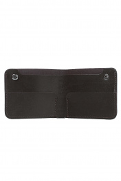 Портмоне закрывается на кнопку, с тиснением на передней части корпуса, выполнено в обрезку, без обработки обрезных краев. Размеры: 110x90x9