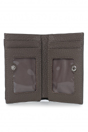 Портмоне закрывается на кнопку, с объемным карманом для монет, закрывающимся клапаном на кнопку и с карманами для пластиковых карт, с открытыми карманами, с карманами для проездного, с отделением для бумажных купюр.Цвет фурнитуры - никель. Размеры: 80x120x15