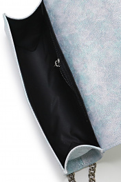 Клатч на одно отделение, закрывающееся клапаном на замок-магнитку, с одной короткой ручкой из цепи длиной 1120+-10мм. Цвет фурнитуры-никель. Размеры: 240x115x70