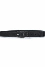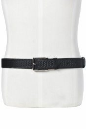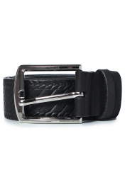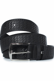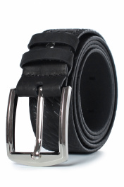 Ремень в обрезку, с обработкой краев, без обстрочки ремня по периметру, с пряжкой и шлевкой на запряжнике, с одной передвижной шлевкой, с тиснением. Цвет фурнитуры-никель. Размеры: 1250x3x40