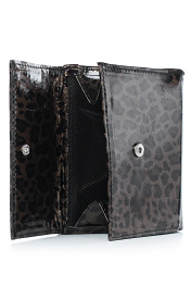 Портмоне закрывается клапаном на кнопку, имеет два отделения для бумажных купюр, карманы для пластиковых карт и карман для монет, закрывающийся клапаном на кнопку. Цвет фурнитуры - никель. Размеры: 105x125x20