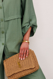 Костюм брючный из струящейся натуральной ткани- отличный вариант для повседневной носкив летнюю погоду.Рубашка и брюки имеют прямой свободный силуэт, подходит для дам" с формами".Рубашка прямого силуэта с планкой по переду и застежкой на петли и пуговицы.По переду имеются горизонтальныескладки для красоты изделия.Рукав 3/4 который собирается на кулису и пуговицы.Брюки прямые длинные со швом по центру передних полотнищ.Застежка брюк на гульфик с пеллей и пуговицей.Также на спинке брюк имеется резинка для хорошей посадки на фигуре и удобства. Жакет 71/59, брюки 107