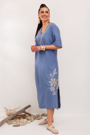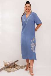 Представляем льняное платье вышивкой производства Беларусь больших размеров-идеальный вариант для летнего образа.Это женское платье длиной до середины икры выполнено из льна с вискозой- отличный выбор для летней жары.Сочетание льна, свободного силуэта и большог и средних размеров делает это платье не только стильным но и комфоттным в носке.Легкое и воздушное, летнееплатье прямого силуэта будет идеальным решением для горячих летних дней.Платье прямого силуэта расклешеное к низу.Горловина оформлена отделочной тканью и также боковые разрезы.По переду имеется авторская вышивка народного стиля "крестик" в цвет отделочной ткани. 124/28