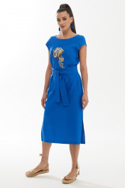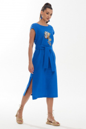 Платье летнее в стиле на каждый день из льна и текстиля Galean Style 802 синий