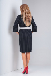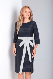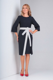 Деловое платье с отрезной талией, бантом и полоской Gamma Gracia 328 чернильный-полоска