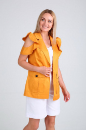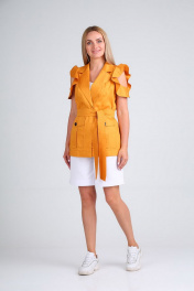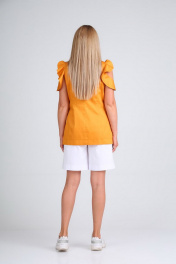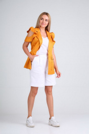 Комплект жилет, шорты и топ из хлопка с дизайнерскими деталями Gamma Gracia 378 белый-оранжевый
