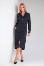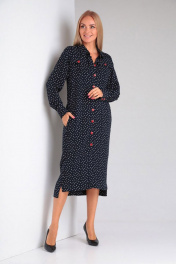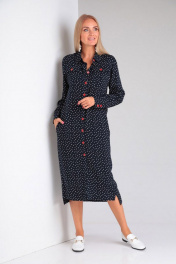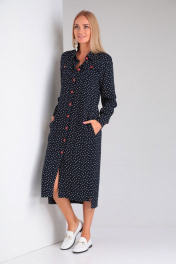 Платье прямого силуэта с карманами и пуговицами на каждый день Gamma Gracia 430 синий белый горох