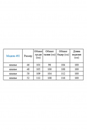 Платье полуприлегающего силуэта с ассиметричной линией горловины, втачные рукава. По верхней части лифа, вдоль горловны нанесена печать. Рукав 7/8 со шлицей в переднем шве, затегивается на петлю пуговцу. Спинка со шлицей в переднем шве. длина платья - 100см, длина рукава - 52см