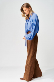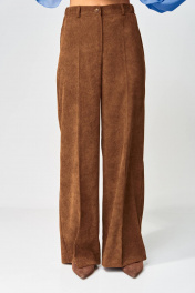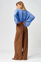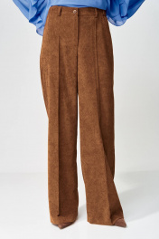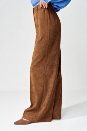 Брюки палаццо с притачным поясом из мягкой вельветовой ткани. Спереди застежка гульфик на молнии и петлей и пуговицей по поясу. По задней частям брюк вытачки. Пояс с резинкой в боковых частях. Брюки с заутюженными стрелками. Длина брюк с учетом пояса - 109 см. Данная модель прекрасно сочетается с другими моделями из нашей коллекции 15410,15377,15409,15416. Создайте гармоничный образ, комбинируя эти изделия!