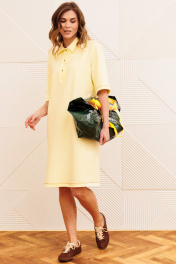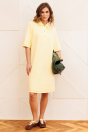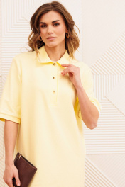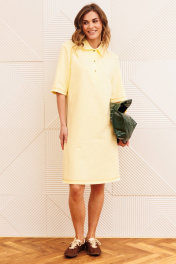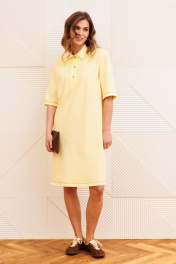 Платье прямого силуэта с воротником поло. Рукав втачной одношовный. По низу изделия, по низу рукава и по воротнику проложена отделочная строчка. Длина платья - 97 см, длина рукава - 30 см