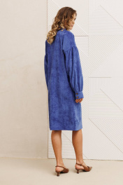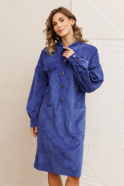 Платье прямого кроя из вельветовой ткани. Перед с застежкой "поло". Воротник на стойке. В районе бедер настрочные карманы, в районе груди настрочные клапаны. Рукав со спущенным плечом, втачной, со сборкой по окату и в месте притачивания манжеты. Манжета с застежкой на 2 петли и пуговицы. Фурнитура может быть изменена с сохранением художественного образа. Длина платья - 92 см, длина рукава платья - 51см.