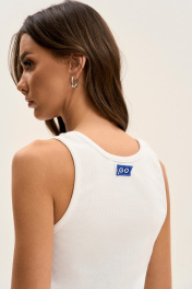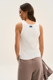 Топ с круглым вырезом без рукавов - самая универсальная вещь для вашего гардероба! Собирайте бесконечное количество стильных луков вместе с GO! Топ: дизайнерская нашивка, зафиксированная булавками (можно крепить в любом месте) плотное облегание комфортная хлопковая ткань. Для придания луку особенности используйте принцип многослойности. Носите майку поверх футболок или под рубашку, при условии, что хотя бы часть каждого изделия остаётся видимой окружающим. При этом каждый слой является самостоятельным (лук останется целостным, если убрать одно из изделий) Полуобхват груди в топе: 42 р - 35 см, 44 р - 37 см, 46 р. - 39 см, 48 р - 41 см.