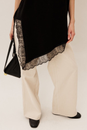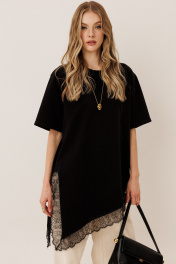 Ассиметричный крой+трендовое кружево = базовая футболка уже не базовая! Футболка: прямой силуэт oversize круглая горловина короткий рукав ассиметричный низ с кружевом Полуобхват груди футболки: 42 р - 56 см, 44 р - 58 см, 46 р - 60 см, 48 р - 62 см, 50 р - 64 см Длина рукава в футболке: 25 см Длина по спинке от горловины: 82 см