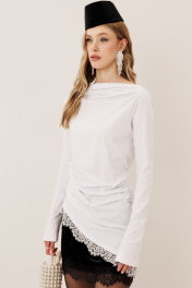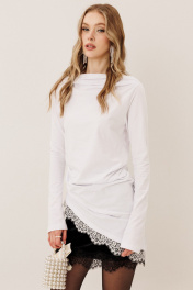 Ультрамодный лонг ассиметричного кроя с кружевом станет вашим любимым в этом сезоне! Собирайте бесконечное количество комплиментов вместе с GO! Лонг: прилегающий силуэт горловина лодочкой сборки на переде удлиненный слегка расклешенный рукав асимметричный низ с кружевом Полуобхват груди лонга: 42 р - 44 см, 44 р - 46 см, 46 р - 48 см, 48 р - 50 см, 50 р - 52 см Длина рукава в лонге: 68-70 см Длина по спинке от горловины: 73-76 см