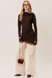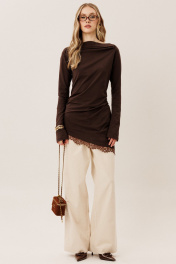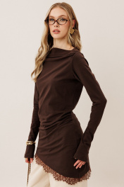 Ультрамодный лонг ассиметричного кроя с кружевом станет вашим любимым в этом сезоне! Собирайте бесконечное количество комплиментов вместе с GO! Лонг: прилегающий силуэт горловина лодочкой сборки на переде удлиненный слегка расклешенный рукав асимметричный низ с кружевом Полуобхват груди лонга: 42 р - 44 см, 44 р - 46 см, 46 р - 48 см, 48 р - 50 см, 50 р - 52 см Длина рукава в лонге: 68-70 см Длина по спинке от горловины: 73-76 см