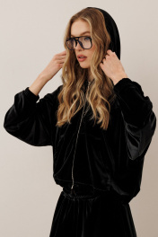 Один из хитов сезона в коллекции от GO - шикарный велюровый костюм! Худи на молнии вместе с широкими брюками - лучшее решение для Вас! Худи: два размера - 42-44, 46-48 р металлическая молния по переду свободное облегание удобные карманы кенгуру комфортный капюшон низ худи на регулируемой резинке Брюки: комфортная посадка пояс прошивной с резинкой и шнуром удобные боковые карманы на передних половинках низ брюк на регулируемой резинке Длина худи по спинке от горловины: 51-53 см Длина рукава худи с плечом от горловины: 79-81 см для роста 170-176 см; Полуобхват груди худи: 42-44 р - 64 см, 46-48 р - 72 см Длина брюк по боковому шву с поясом: 107-110 см для роста 170-176 см Полуобхват бедер брюк: 42-44 р - 58 см, 46-48 р - 62 см