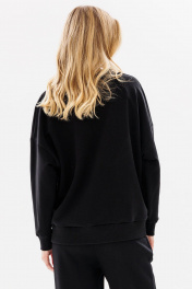 Черный свитшот с дизайнерской печатью и спущенными плечами GO F4083/40-02. 164-170