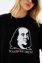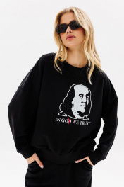 Вы не останетесь незамеченной в свитшоте с дизайнерской печатью “Бенджамин Франклин” от GO! свободный силуэт спущенное плечо горловина, манжеты, низ свитшота - из кашкорсе дизайнерская печать на переде Длина свитшота 62-64 см. Длина рукава от горловины 70-72 см для 164-170 см, 72-74 см для 170-176 см. Полуобхват груди свитшота: 42 р - 64 см, 44 р - 66 см, 46 р - 68 см, 48 р - 70 см, 50 р - 72 см, 52 р - 74 см.