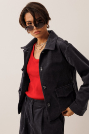 Современный жакет из хлопкового вельвета от GO составит беспроигрышную комбинацию с вашими платьями, юбками и брюками. Жакет: прямой силуэт укороченная длина функциональные накладные карманы с клапаном застежка на петли пуговицы жакет без подкладки Длина жакета по среднему шву спинки: 58-60 см для роста 170-176 Длина рукава (немного спущенное плечо): 58 см для роста 170-176 Полуобхват груди жакета: 42 р - 48 см, 44 р - 50 см, 46 р. - 52 см, 48 р. - 54 см, 50 р. - 56 см
