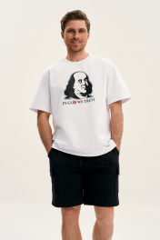 Футболка от GOwear станет отличной базой в вашем гардеробе! Футболка: классическое облегание дизайнерский принт ткань 2-нитка френч-терри Длина футболки по спинке: 68-74 см Длина рукава в футболке: 23-26 см Полуобхват груди в футболке: 46 р - 52 см, 48 р - 54 см, 50 р - 56 см, 52 р - 58 см, 54 р - 60 см, 56 р - 62 см, 58 р - 64 см.