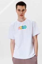 Футболка от GOwear станет отличной базой в вашем гардеробе! Футболка: классический крой и облегание дизайнерская печать: разноцветное “ЛОГО” ткань 2-нитка френч-терри Длина футболки по спинке: 68-74 см. Длина рукава в футболке: 23-26 см. Полуобхват груди в футболке: 46 р - 52 см, 48 р - 54 см, 50 р - 56 см, 52 р - 58 см, 54 р - 60 см, 56 р - 62 см, 58 р - 64 см.