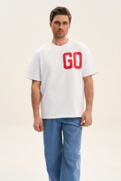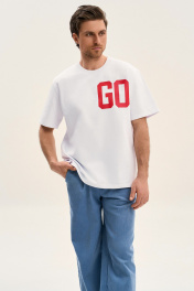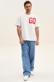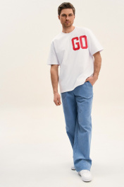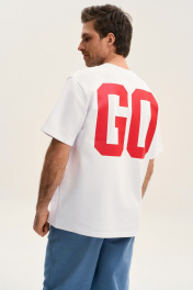 Футболка от GOwear станет отличной базой в вашем гардеробе! Футболка: классическое облегание дизайнерский принт на переде и спинке ткань 2-нитка френч-терри Длина футболки по спинке: 68-74 см Длина рукава в футболке: 23-26 см Полуобхват груди в футболке: 46 р - 52 см, 48 р - 54 см, 50 р - 56 см, 52 р - 58 см, 54 р - 60 см, 56 р - 62 см, 58 р - 64 см.