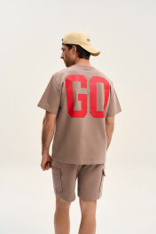 Футболка от GOwear станет отличной базой в вашем гардеробе! Футболка: классическое облегание дизайнерский принт на переде и спинке ткань 2-нитка френч-терри Длина футболки по спинке: 68-74 см Длина рукава в футболке: 23-26 см Полуобхват груди в футболке: 46 р - 52 см, 48 р - 54 см, 50 р - 56 см, 52 р - 58 см, 54 р - 60 см, 56 р - 62 см, 58 р - 64 см.