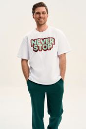 Футболка от GOwear станет отличной базой в вашем гардеробе! Футболка: классическое облегание дизайнерский принт ткань 2-нитка френч-терри Длина футболки по спинке: 68-74 см Длина рукава в футболке: 23-26 см Полуобхват груди в футболке: 46 р - 52 см, 48 р - 54 см, 50 р - 56 см, 52 р - 58 см, 54 р - 60 см, 56 р - 62 см, 58 р - 64 см.