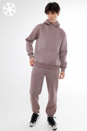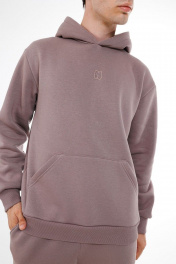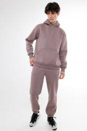 Костюм комфортный покроя oversize, спортивного стиля из комфортной ткани (футера с начесом). Костюм состоит из худи и брюк. Худи прямого силуэта, с притачной манжетой по низу изделия. Худи имеет двойной капюшон с кулисой и шнуром внутри. На переде карман - кенгуру и вышивка – логотип по центру переда в цвет ткани. Рукава втачные с манжетой. Брюки с притачным поясом с резинкой и шнурком внутри. Передняя половинка брюк с боковыми карманами. Низ брюк присобран на резинку. Длина худи по спинке 69-75 см в зависимости от размера и роста. Длина рукава: 64-67 см для роста 176-182, 68-71 см для роста 182-188. Полуобхват груди худи: 46 р. - 56 см, 48 р. - 58 см, 50 р. - 60 см, 52 р. - 62 см, 54 р. - 41 см, 56 р. - 66 см, 58 р. - 68 см, 60 р. - 70 см, 62 р. - 72 см. Длина брюк по боковому шву с поясом: 103-105 см для роста 176-182, 107-109 см для роста 182-188. Полуобхват бедер: 46 р. - 50 см, 48 р. - 52 см, 50 р. - 54 см, 52 р. - 56 см, 54 р. - 58 см, 56 р. - 60 см, 58 р. - 62 см, 60 р. - 64 см, 62 р. - 66 см.